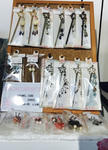 そして、刀デザインの簪にちりめんや和柄のパーツを合わせた刀簪や、ちりめんを使用したブローチも数点店舗より持ってまいります。和風が好きな方はどうぞ遊びに来てください。